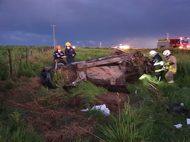 Según el conductor manifestó a Distrito Interior, luego de agarrar un pozo en la ruta, perdió el control, aparentemente porque la rueda delantera derecha se le salió, desviándose hacia la mano contraria, ingresando a la banquina donde luego de varios tumbos quedaría con las cuatro ruedas hacia arriba a centímetros del alambrado.