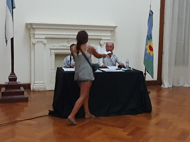 Inicialmente comenzaron haciéndose oír en la puerta del Palacio Municipal hasta donde llegaron con elementos que utilizaron a modo de bombo, luego dos jóvenes ingresaron hasta la planta alta donde se encontraban los ediles sesionar en el tratamiento de la Ordenanza Tributaria y el Presupuesto.