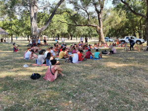 Esta mañana se está llevando a cabo una obra de títeres en el escenario natural que ofrece el Parque «Martiniano Charras», bajo la sombra de los grandes eucaliptos; el espectáculo forma parte del Programa Verano +ATR al que el municipio se suma con esta propuesta que articula con la Provincia.