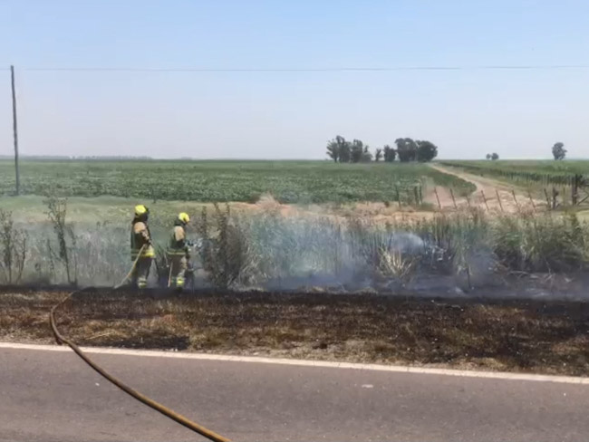 Testigos que aguardaban apenas se inició el incendio contaron a Distrito Interior que el fuego se advertía entre el chasis y el térmico; efectivamente el foco inició en la rueda delantera derecha del remolque y desde allí se propagó hacia la cabina, seguramente influenciado por el viento, a su vez las llamas alcanzaron la banquina lo que obligó a los bomberos intervenir con más de una dotación.
