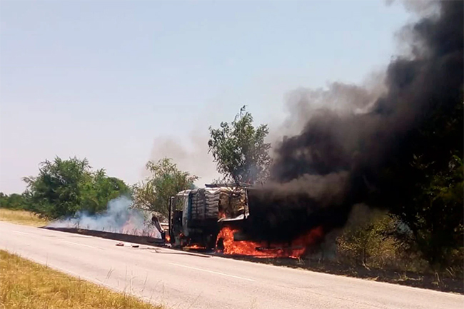 Un camión salió de General Pico con alimento balanceado y a los pocos kilómetros se prendió fuego