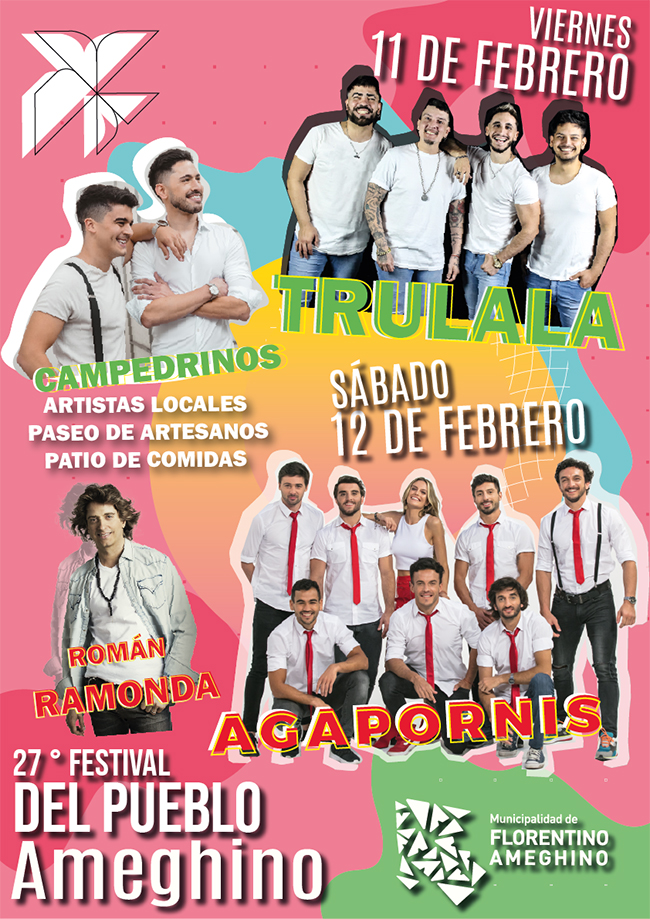 La Municipalidad de Florentino Ameghino dio a conocer la grilla de artistas centrales que estarán presentes en la 27° edición del Festival del Pueblo.