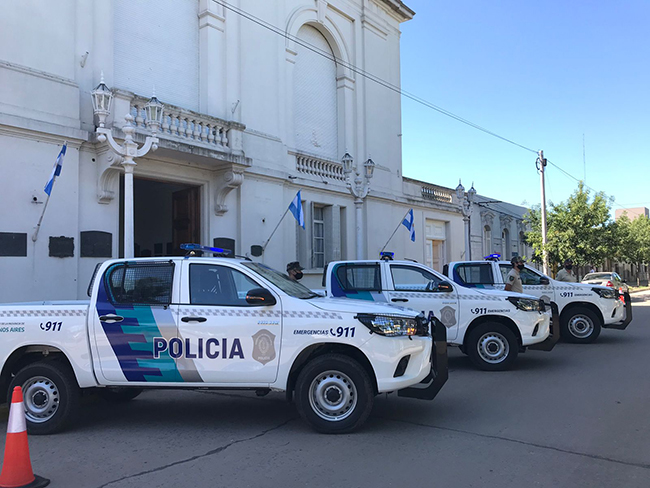 Este jueves el Intendente Eduardo Campana recibió al Ministro de Seguridad de la Provincia de Buenos Aires Sergio Berni, quien hizo entrega de 3 camionetas 0 Km destinadas para la Seguridad Rural del Distrito.