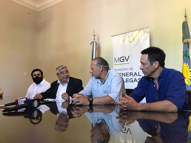 El Ministro, acompañado por el Subsecretario de Seguridad Guillermo Calviño y la Directora de Coordinación Rural Natalia Rama mantuvieron una reunión con el Intendente, funcionarios municipales, concejales, autoridades policiales y representantes de Sociedad Rural y Federación Agraria seguido de una conferencia de prensa.