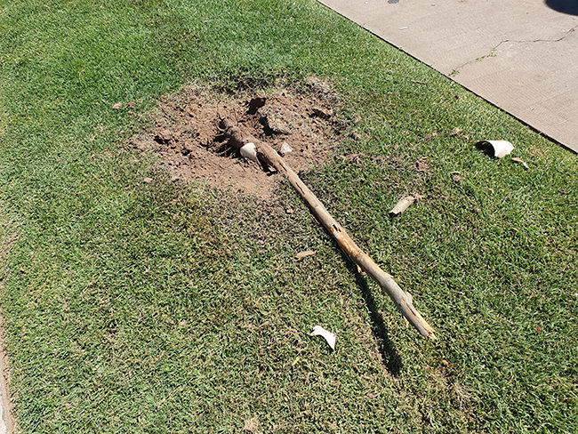El auto, un Peugeot 207 Compact, circulaba por Paso cuando, aparentemente una descompensación, la conductora, a la que acompañaba otra mujer, se desvió hacia su derecha subiendo a la vereda, impactando contra dos árboles de tamaño medio a los que quebró y arrancó, logrando detener el auto a metros de San Martín, evitando impactar contra una columna.