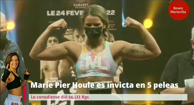 En esta ocasión la rival de turno será, Marie Pier Houle, boxeadora canadiense de 30 años de edad, que posee un récord de trece victorias y no conoce la derrota. Además, Houle viene de ganar un combate que culminó en tragedia luego de que su rival, la mexicana Jeanette Zacarías Zapata, falleciera producto de los golpes recibidos durante la pelea.