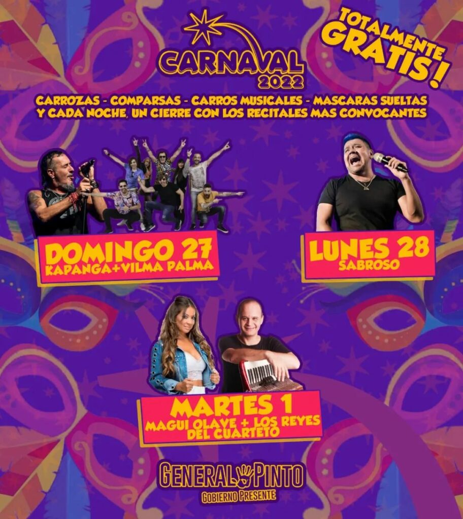 General Pinto – Reprogramación: Kapanga y Vilma Palma actúan esta noche en el Carnaval