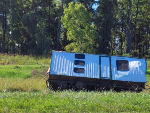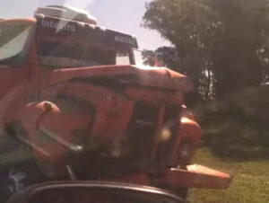 Más adelante, en sentido Villegas – Ameghino, se produjo otro accidente, al que corresponde la.imegen de la portada, entre un camión e implementos agrícolas.
