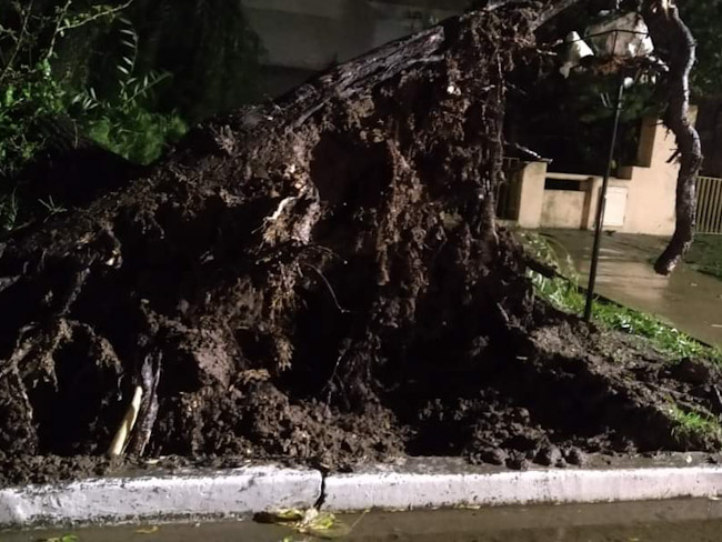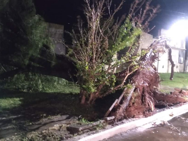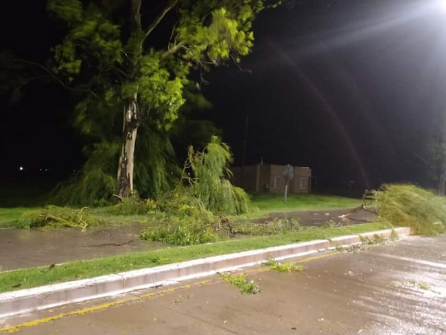De los reportes recientes se desprende que la más afectada es Carlos Tejedor donde se produjeron caídas de ramas, carteles, columnas del te digo eléctrico que además sostienen los cables de otros servicios como televisión, tal como muestran las imágenes de FM Láser de la vecina ciudad.