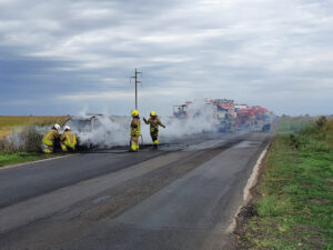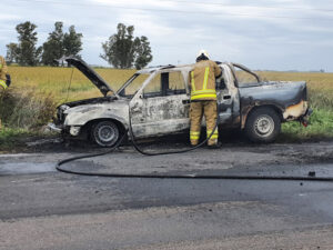 El rodado, una Chevrolet S10 circulaba hacia General Villegas, a unos 7 kilometros de ésta, cuando el conductor advirtió el humo saliendo del motor. Habría sido por la rotura de una manguera del aceite.