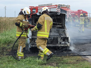 Como formaba parte del equipo de un contratista, pudieron intervenir con un matafuego las personas que viajaban junto a él logrando extinguir las llamas.
