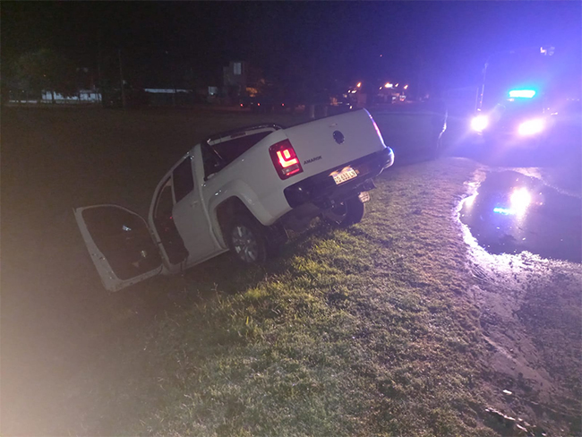 Una camioneta despistó y terminó dentro del zanjón frente a la YPF en General Villegas