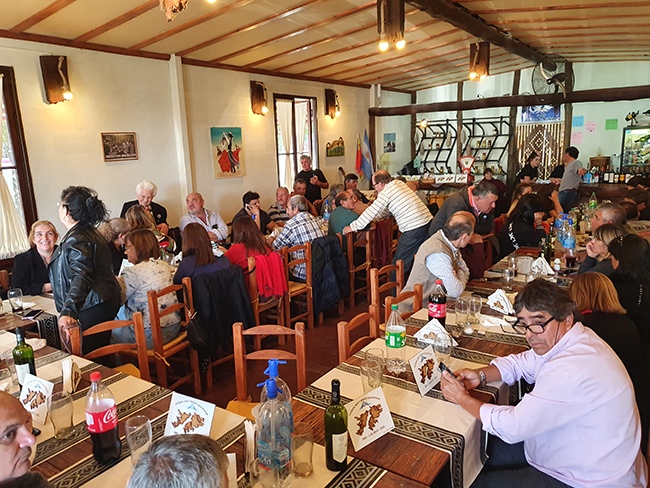 En la cabecera se ubicaron los ex combatientes y la mamá y hermano de Fabián Siri, héroe de Malvinas desaparecido en el hundimiento del ARA General Belgrano, que también fueron parte de este acontecimiento realizado por primera vez; el resto del salón ubicado sobre la Ruta 188 lo colmaron integrantes de la peña musical y vecinos que se acercaron a compartir la iniciativa.
