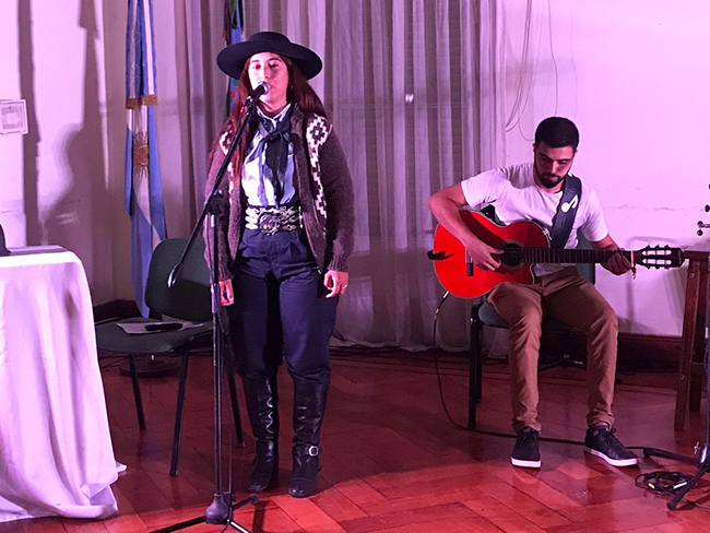 A través de la Secretaría de Cultura se propusieron una serie de intervenciones artísticas comenzando por el profesor de Piano Gustavo López Ponce y un recitado de Yamila Castellano “2 de abril, el soldado Maciel” acompañada por Gerardo Prieto en guitarra.