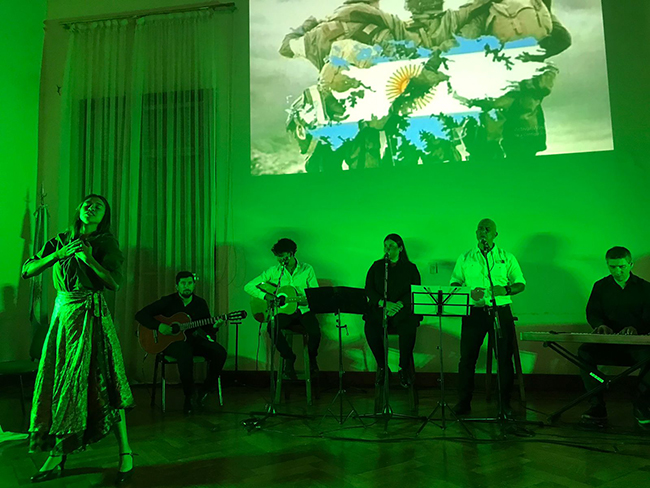 En una conmovedora puesta escenográfica, musical y de interpretación artística Sebastián Carignano, Christian Francucci, Jessica Hernández, Mateo Trovatto, Gustavo López Ponce y Pamela Perfumo realizaron el homenaje “Somos Malvinas”.