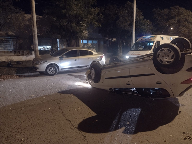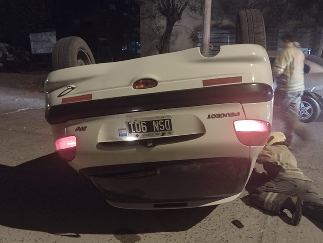 El Peugeot que era conducido por un hombre de 28 años, de apellido Cuello colisionó de atrás al Renault, propiedad de Zamperetti, que en ese momento no tenía ocupantes en su interior, y luego volcó con las cuatro ruedas hacia arriba quedando en esa posición en el medio de la calle.