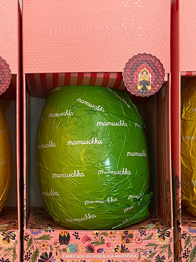 En esta oportunidad y con tiempo hasta el domingo al mediodía, están a la venta los huevos de chocolate Mamushkca y las tradicionales roscas, que incluso están acompañadas en su envoltorio por un delicado detalles.