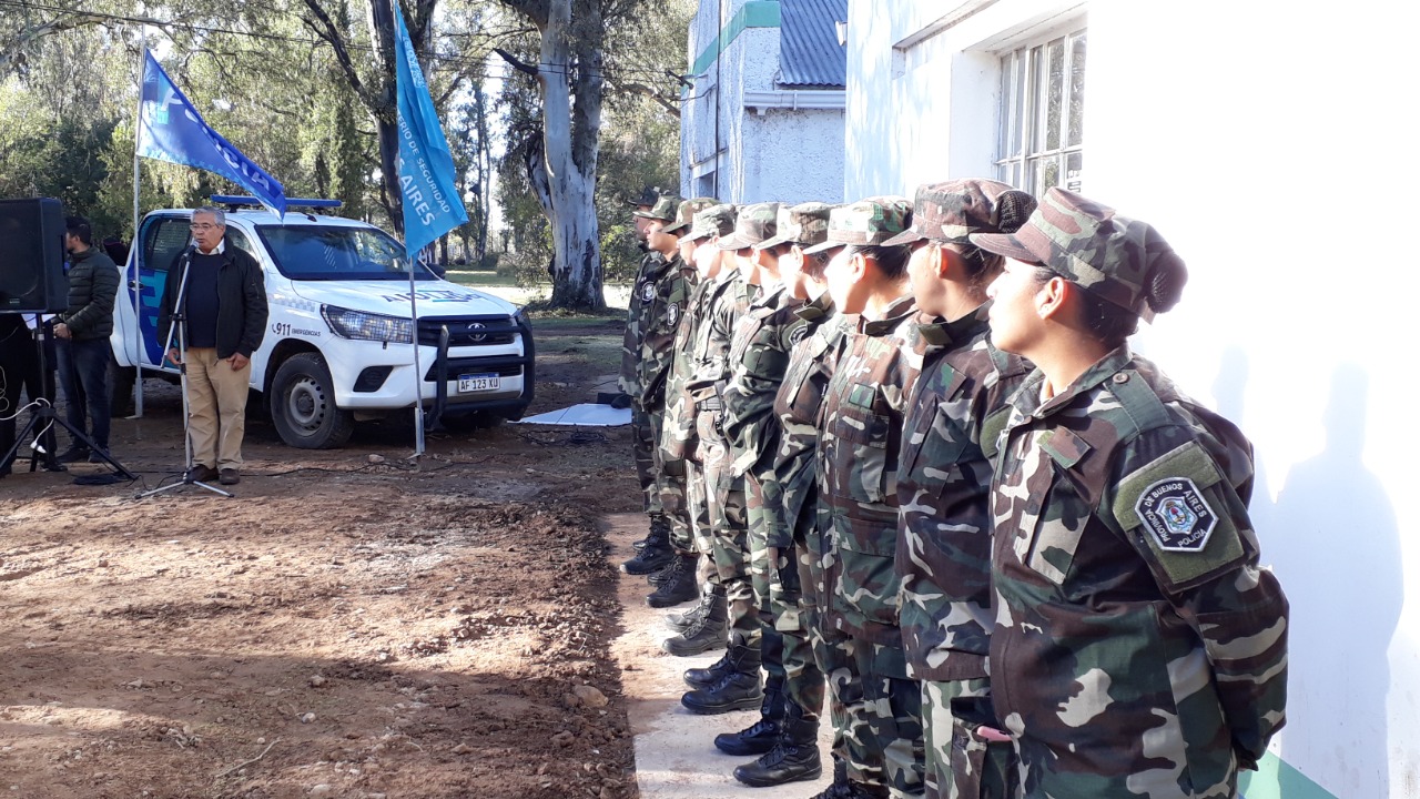Agradezco a las autoridades del Ministerio de Seguridad de la Provincia de Buenos Aires, a la Jefatura de Policía de Provincia, a la Superintendencia de Seguridad de Distritos Rurales y a las gestiones rurales llevadas adelante por el Intendente, el acompañamiento de todo el personal y sobre todo a los oficiales que hoy se incorporan.