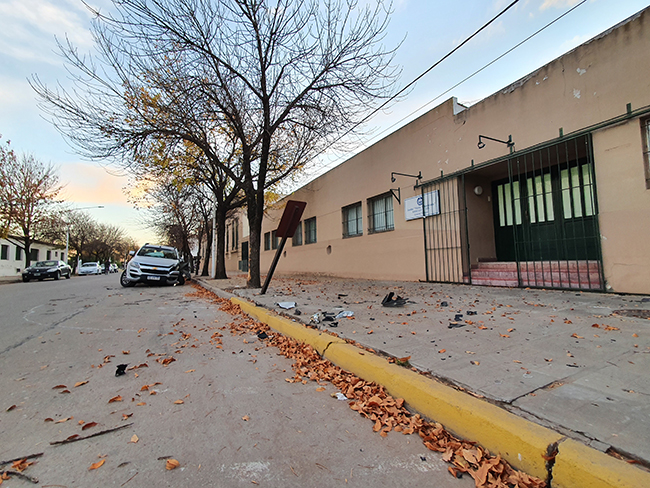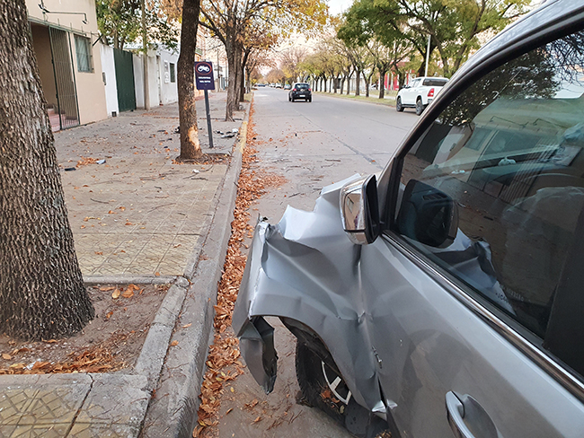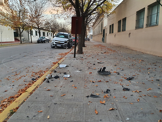 Esta madrugada, alrededor de las 5:30 hs. un fuerte estruendo alertó a los vecinos cercanos a la Plaza Principal donde una camioneta Chevrolet S10 había impactado contra un árbol y cartel indicativo de tránsito.