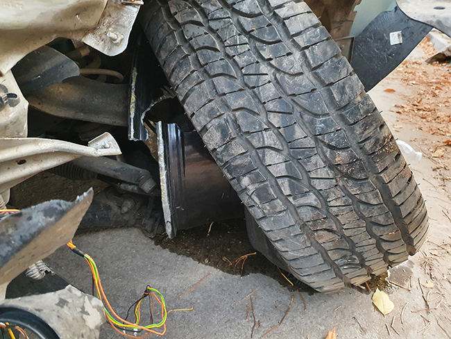 El vehículo que era conducido por un hombre mayor de edad, se desvió hacia su derecha colisionando directamente sin posibilidades de retirarse por sus propios medios ya que la parte delantera derecha había quedado completamente destruída, incluyendo la rueda cuya llanta se partió al medio.