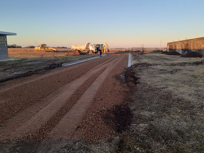 Asimismo, en el nuevo ingreso se ejecutó la herrería y con la retro pala, camión y motoniveladora se realizó el movimiento de suelo, se efectuaron los niveles correspondientes y finalizó con piedra caliza.