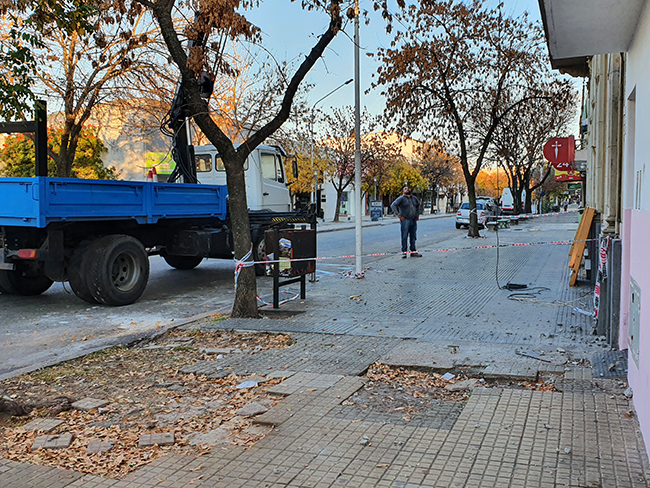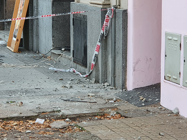 Ante el riesgo de nuevos desprendimientos, similar a lo que sucedió tiempo atrás en el Palacio Municipal, se optó por la medida más urgente y segura, la de clausurar la vereda y remover aquellas partes que están en riesgo de caer.