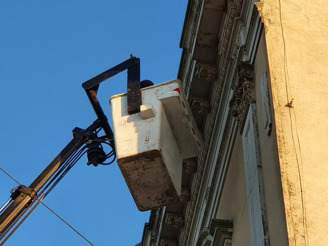 La tarea que se llevaba a cabo esta mañana demandaría horas. Luego de las evaluaciones se estima se vuelva sobre la estructura para que recupere su forma y esplendor.