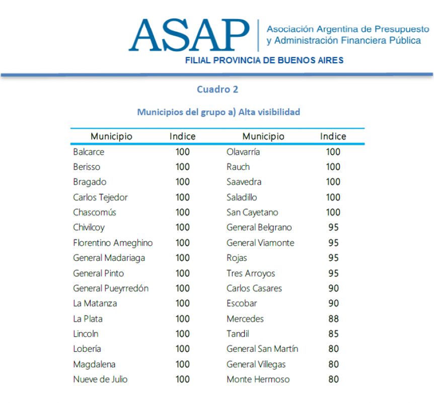 Solo 32 municipios bonaerenses cuentan con un alto grado de visibilidad de las cuentas públicas, de acuerdo con un informe de la Asociación Argentina de Presupuesto y Administración Financiera Pública, detalla La Tecla.