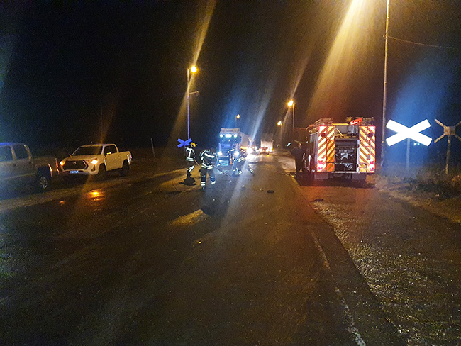El incidente se produjo en el paso a nivel sobre la Ruta 33 a un kilómetro del acceso Centenario, entre nuestra ciudad y Piedritas. Ambos rodados circulaban en ese sentido.