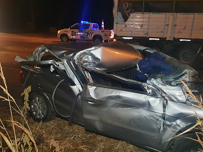 Un automóvil Volkswagen Gol en el que se movilizaba una pareja de Trenque Lauquen, con una perro manto negro a bordo a la que al parecer trasladaban para hacerla servir, colisionó de atrás violentamente contra el acoplado que tiraba un camión Iveco, perteneciente a una empresa de General Villegas.