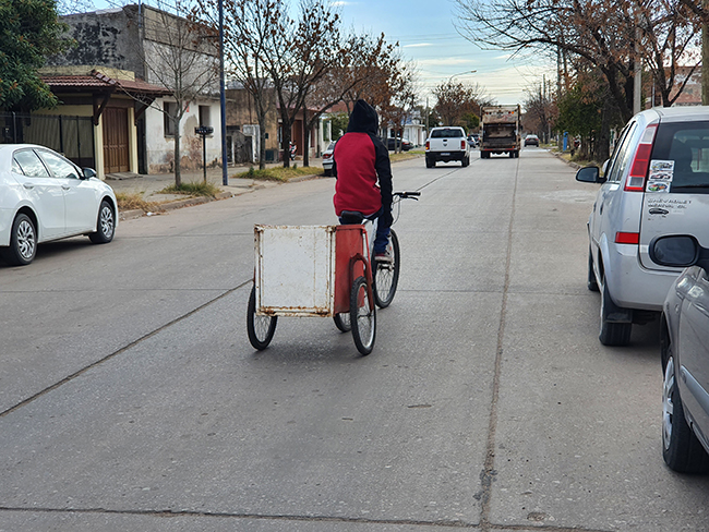 El próximo paso, para el que no demuestra apuro, sería la compra de una moto que le permitirá optimizar el recorrido, pero por ahora con la bicicleta está muy bien. También tiene claro que quiere radicarse en otro lugar fuera de General Villegas, pero aún no tiene decidido dónde, pero sí que debe ahorrar lo suficiente como para movilizarse por sus propios medios sin depender de nadie más que él mismo.