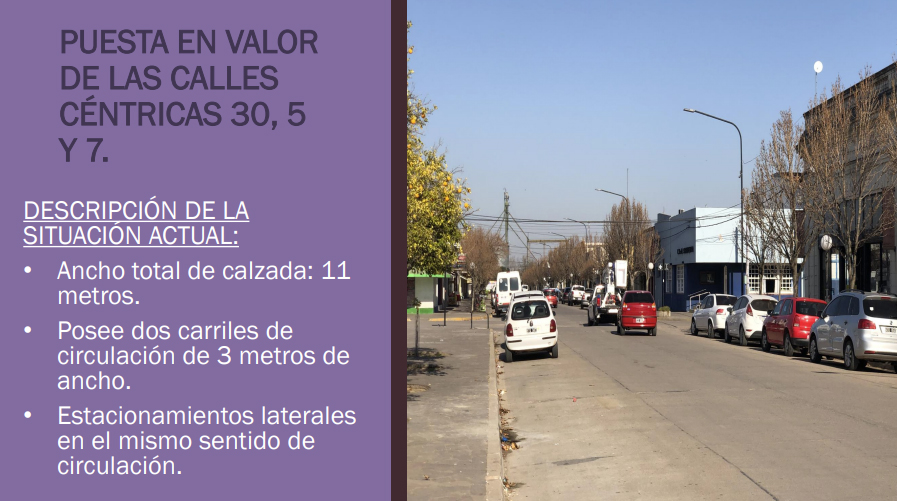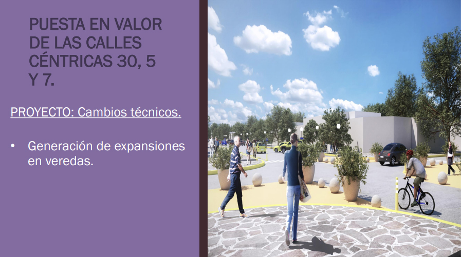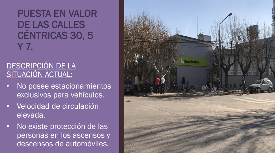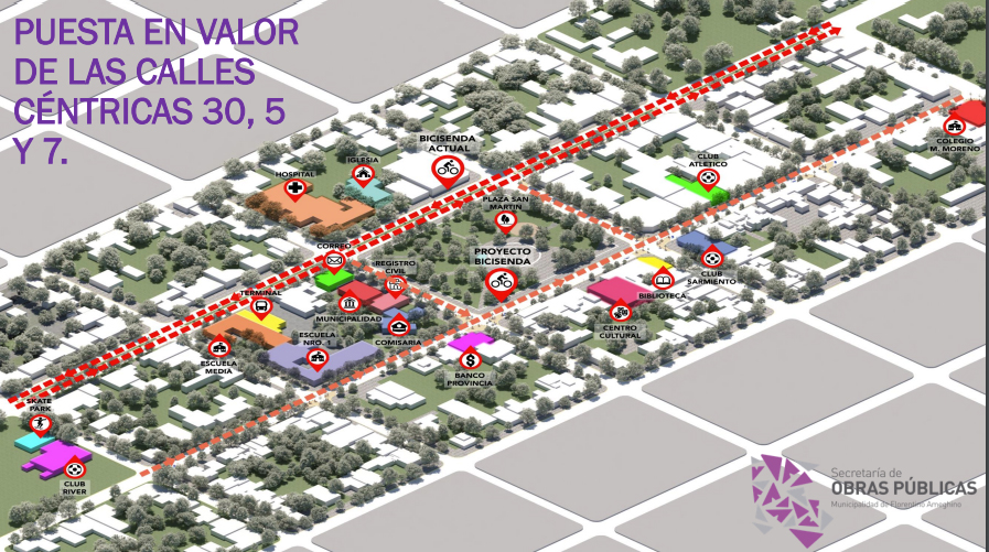 - buscamos unificar una trama de circulación entre los extremos de la ciudad que van desde calle 23 a calle 1, atravesando toda la ciudad, y brindando más seguridad a miles de personas que circulan hacia instituciones educativas, el centro comercial, los bancos, las oficinas públicas, los principales espacios públicos de la ciudad.