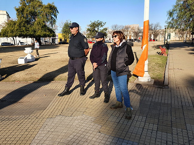 Cabe destacar que la única persona vinculada a la política local, fue la actual Secretaria de Gobierno, Alicia Laino, a quien se ve en una de las fotografía, circunstancialmente, junto a dos efectivos de la Policía, quien estuvo allí en carácter de vecina, ratificando su compromiso con la lucha a la que, tal lo descrito por ella misma, contribuyó con la formación de la Mesa contra la Violencia y la capacitación de funcionarios municipales en la Ley Micaela.