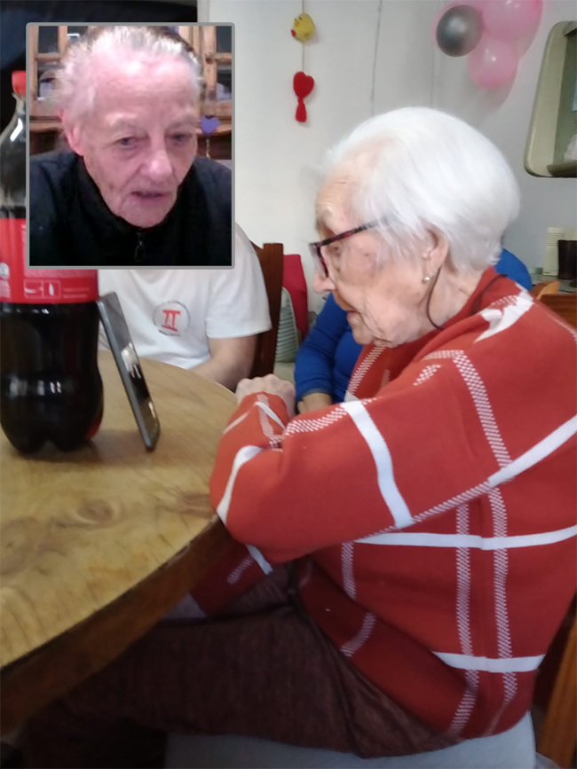 Hoy una de las sorpresas fue el contacto con su única hermana de 94 años, a través de una video llamada. Como se ve, ha sabido adaptarse a los cambios que el tiempo le ha impuesto y hecho uso de las herramientas que éste le ofrece (foto inferior).
