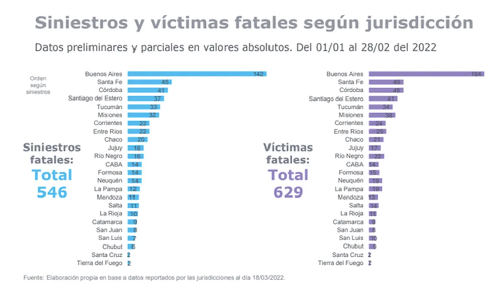 En el primer bimestre del año 2022 Argentina tuvo un descenso en la cantidad de siniestros viales reduciendo, también, el número de víctimas fatales comparado con años anteriores donde la circulación fue similar. De acuerdo con Pablo Martínez Carignano, director ejecutivo de la ANSV, estamos mejor que en 2019 y que los años anteriores, sin embargo, aún hay 10 muertos por día en siniestros viales en Argentina que podrían ser evitados y de los cuales la mitad de esos fallecimientos son jóvenes menores de 35 años.