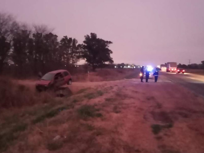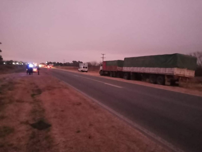 El incidente en el que se rozaron un camión y un auto ocurrió en el kilómetro 217 de la traza nacional al caer la tarde.