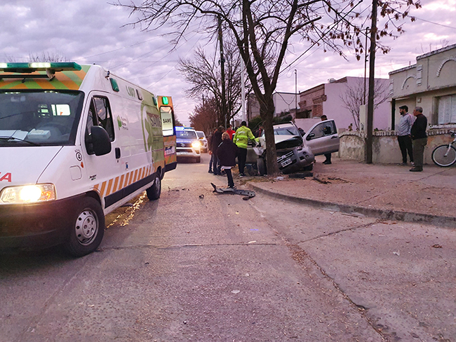 Una de las primeras personas que lo auxilió, un hombre que pasaba en bicicleta por el lugar, contó a Distrito Interior que el conductor se desvió y la potencia del choque hizo que la Fiat Strada «saltara» a la vereda para quedar tal como se la observa.