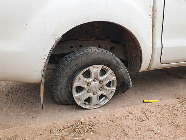 Como consecuencia el auto perdió el control e impactó contra una columna de cemento lo que provocó el traslado de la conductora, que al momento no trasladaba pasajeros, al hospital con golpes, en tanto los ocupantes de la pick up resultaron ilesos, sin posibilidades de movilizarse ya que una de las ruedas había sufrido serios daños.