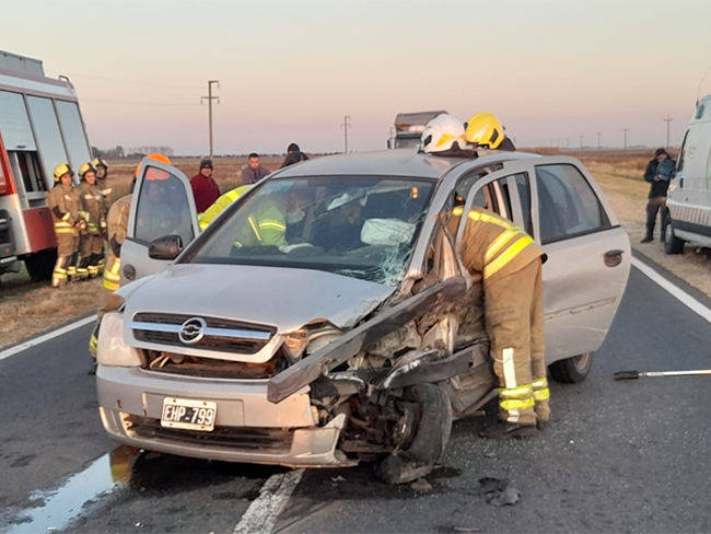 Una Chevrolet Meriva que viajaba hacia Villegas proveniente de General Pinto, con dos ocupantes a bordo, colisionó prácticamente de manera frontal con un camión que lo hacía en sentido contrario.