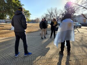 A las 10:00 hs. como estaba previsto, unas 30 personas se reunieron frente al Palacio Municipal y de allí, luego de permanecer una media hora partieron hacia el recorrido indicado.