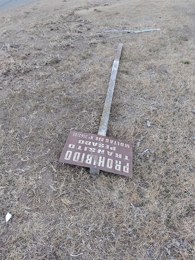 «Esta obra todavía no fue inaugurada y ya comenzaron a dañarla, no les importa nada o les molesta», expresó acerca del alumbrado y bicisenda que une el cementerio y nuevo corralón municipal con el acceso Guerino Volpe, agregando que las imágenes las tomó hace unos días pero dudaba en enviarlas, pensando que «tal vez había sido bajada por alguna cuestión en particular, pero en realidad ha sido derribada, como si la hubiesen empujado con algo», aseguró.