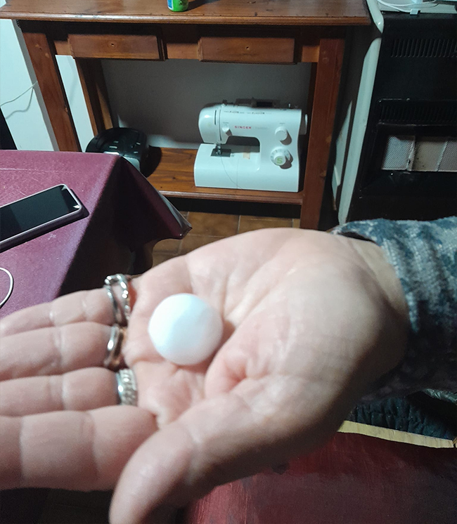 En el video se puede apreciar, en los primeros segundos el sonido del impacto de las piedras, y las piedras que fueron grabadas por una lectora del barrio El Cruce, luego la intensidad de la lluvia que se prolongó por algunos minutos más acompañada por actividad eléctrica.
