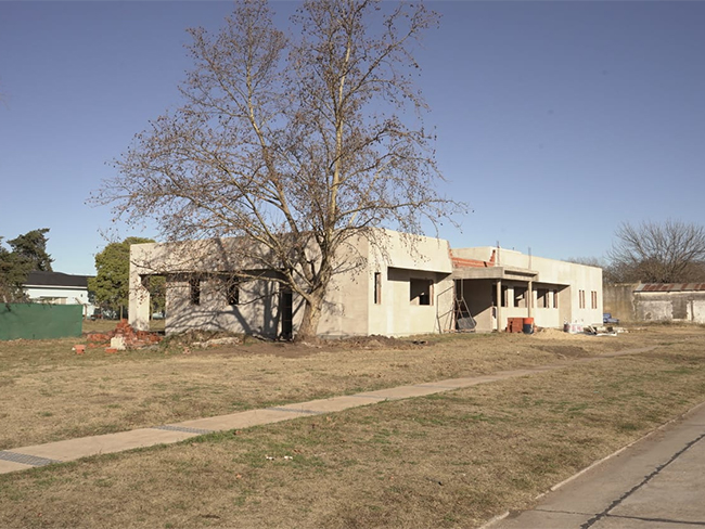 A Las instalaciones que se construyen dentro del predio del hospital municipal «Dr. Alberto L. Videla» se les realizó el revoque grueso a las paredes exteriores e interiores y colocó la cubierta en el techo con su correspondiente material aislante.