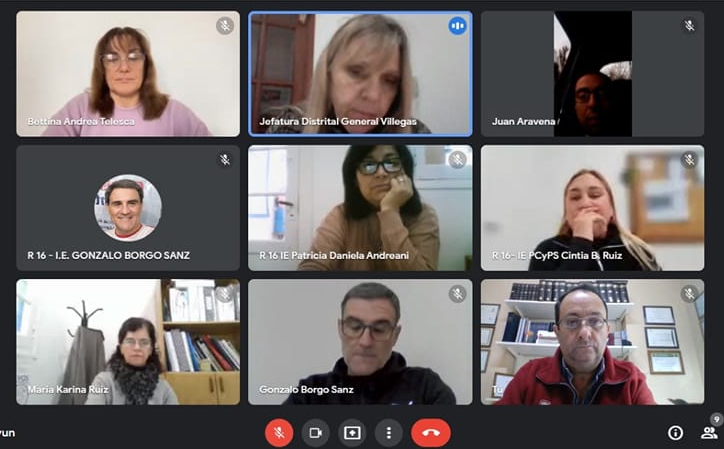 Luego, a mediados del mes de Julio se reunieron, esta vez de manera virtual, Castaños, la Jefa Inspectora Distrital, Susana Garat, las Inspectoras Bettina Tedesca, Patricia Andreani, Karina Ruiz, Cintia Ruiz, y los Inspectores Fabián Sueldo y Gonzalo Borgo Sanz; también lo hizo el Director de Participación y Relaciones Comunitarias del Ministerio de Seguridad de la Provincia de Buenos Aires, Juan Aravena, con el que acordaron organizar acciones conjuntas que aborden problemáticas relacionadas a situaciones de violencia y vulneración de derechos dentro y fuera del escenario escolar.