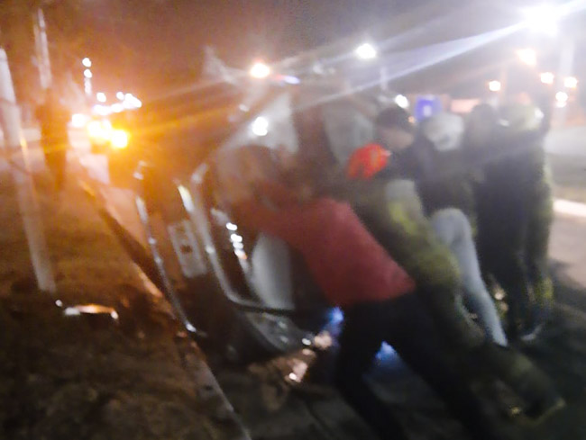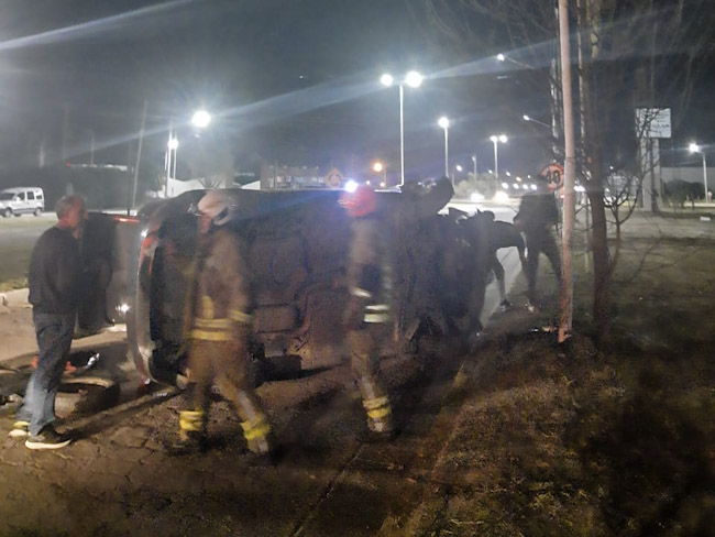 Minutos antes de las 23:00 hs. un automóvil Ford Focus que circulaba por el acceso principal a la ciudad cabecera colisionó contra una columna del alumbrado público y luego volcó.