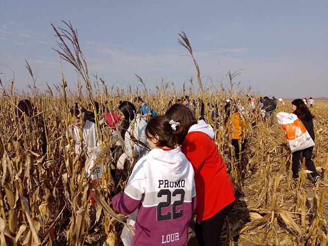 Fue en un campo ubicado sobre la Ruta 226 que facilitó Eugenio Leporatti; de allí unos 160 alumnos del colegio El Nacional recolectaron a mano una hectárea de maíz.