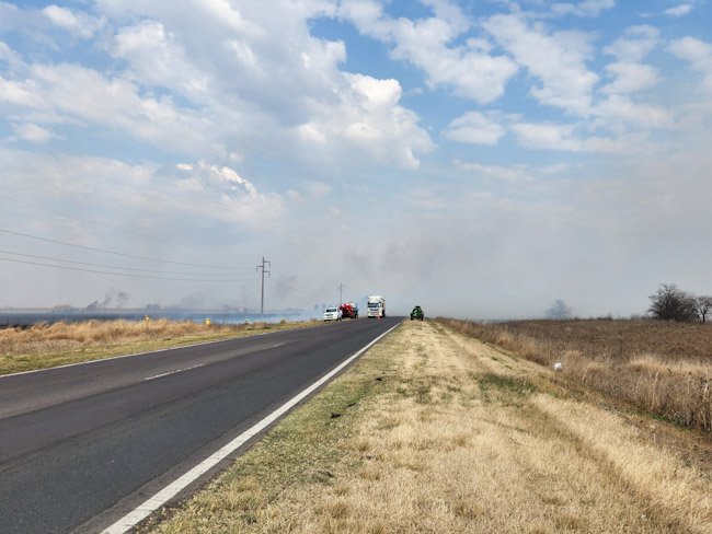 Las imágenes corresponden a un incendio producido esta tarde, 13:30 hs. en la Ruta 33, en cercanías de la bajada al hipódromo de General Villegas donde el intenso humo que ocultó por completo la traza al cruzar de un lado a otro volvió realmente peligrosa la situación.