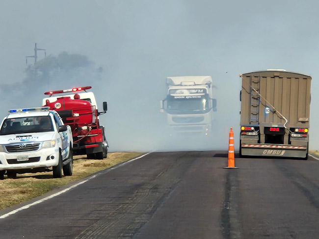 Conscientes de esto los bomberos trabajaron con la intensidad de siempre, pero además luchando contra el reloj tratando de acortar los tiempos para que la cortina se disipase lo antes posible, dado que a pesar de la presencia del personal de la Policía de Segueidad Vial el tránsito nunca fue interrumpido aunque si se implementaron las medidas de seguridad tales como las balizas del móvil, conos y efectivos en los extremos del incendio.
