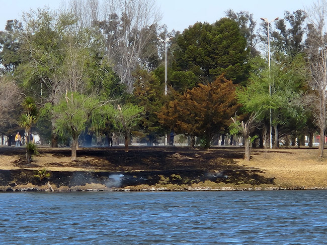 Esta tarde se incendió la isla del Parque Municipal y dadas las condiciones climáticas, el estado de las gramíneas y el viento reinante el fuego se propagó por una amplia superficie.