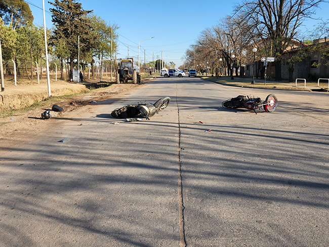 Esta mañana alrededor de las 8:00 hs. dos motos colisionaron violentamente en el ingreso al vivero municipal, los protagonistas fueron dos hombres que debieron ser trasladados al hospital debido a las lesiones.